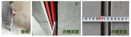 16管開槽深度不少于3.1cm,20管開槽深度不少于3.5cm,保證水泥砂漿厚度不低于1.5cm,確保開槽處水泥粉層不會開裂。